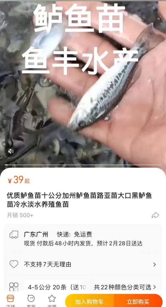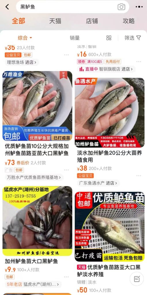 これも以前にお話ししたように中国ではブラックバスは食用魚として、養殖されています。