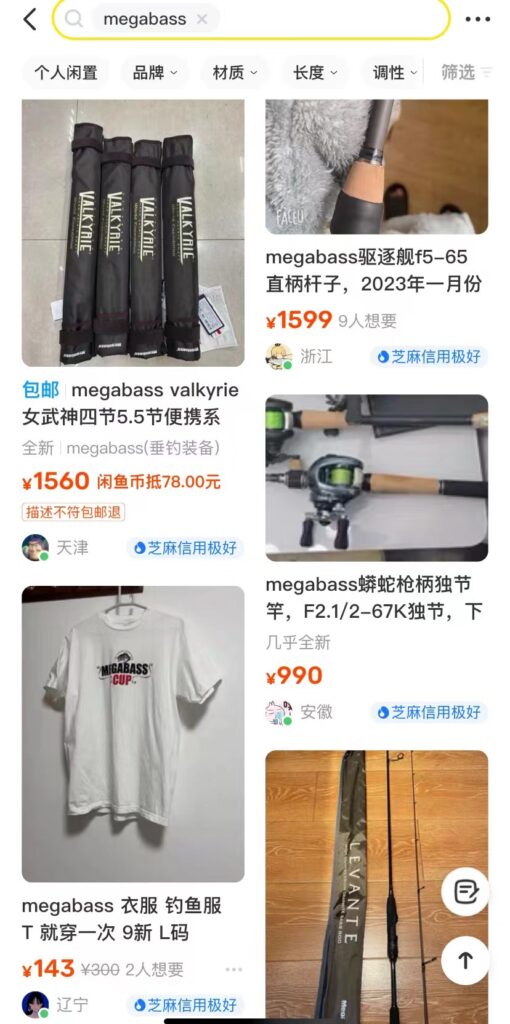 • 中国では闲鱼で日本の釣具が買える。