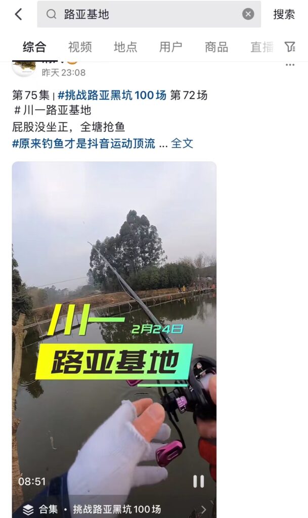 中国でバス釣りがしたい方は抖音で「路亚基地+自分の住んでる場所」と検索するのがおすすめです。